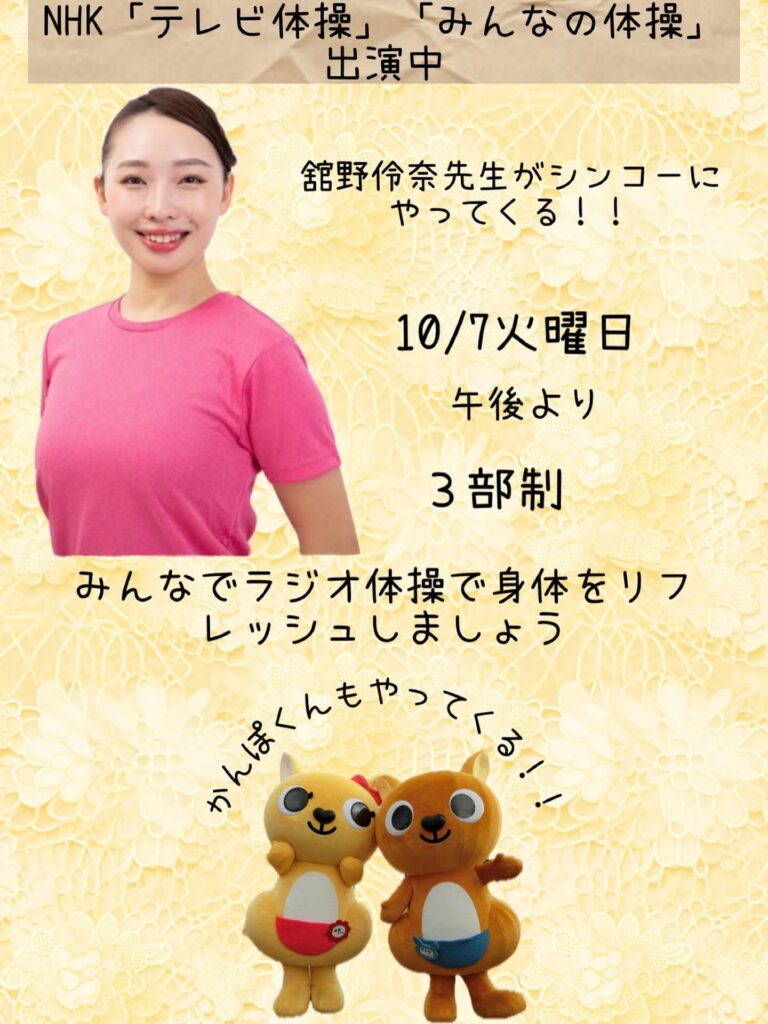 健康イベントのお知らせNHK「テレビ体操」「みんなの体操」出演中の舘野怜奈先生@rena.tateno