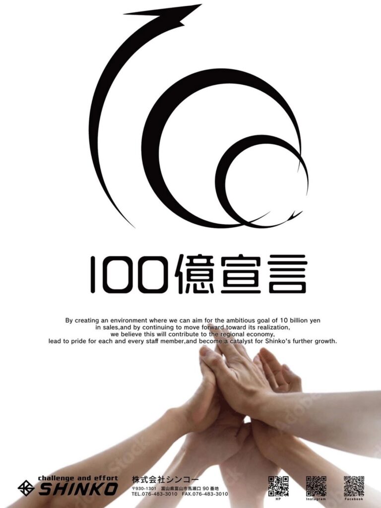 この度、中小企業庁の推進する「100億宣言企業」に宣言させて頂きました。😊