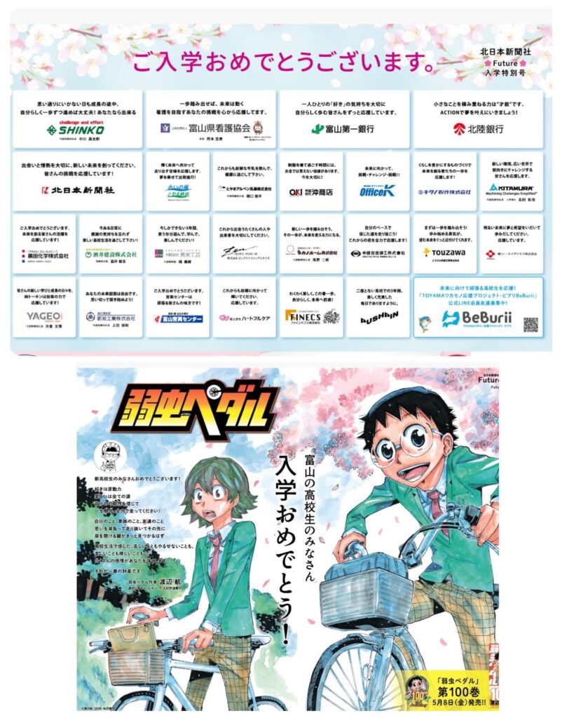#北日本新聞#弱虫ペダル#入学おめでとう